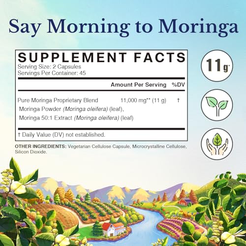 50X Concentrated Clear Extraction | Our product options 11g of moringa leaves per serving from a proprietary mix of Moringa oleifera 50:1 extract and Moringa oleifera powder. This excessive efficiency system helps you reap the utmost advantages of each capsule. Vitalitown Moringa includes a supercritical extraction course of, utilizing solely CO2 and purified water. No harsh solvents or alcohol residues. Nourish your physique and Uplift your thoughts with 11g** of superleaf.* No Sticks or Seeds.